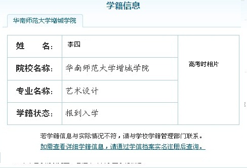 2.学生通过学信档案实名注册后可查看详细学籍信息。方法为:点击上图2下方的“如需查看详细学籍信息,请通过学信档案实名注册后查询。”出现下图(图3):