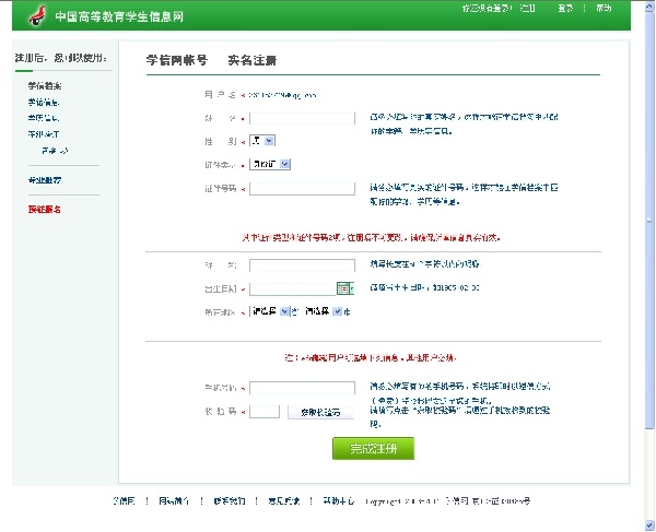 ①填写姓名时不能出现错别字,与学籍信息中的姓名不匹配时虽能注册成功但无法查询到学籍信息;
