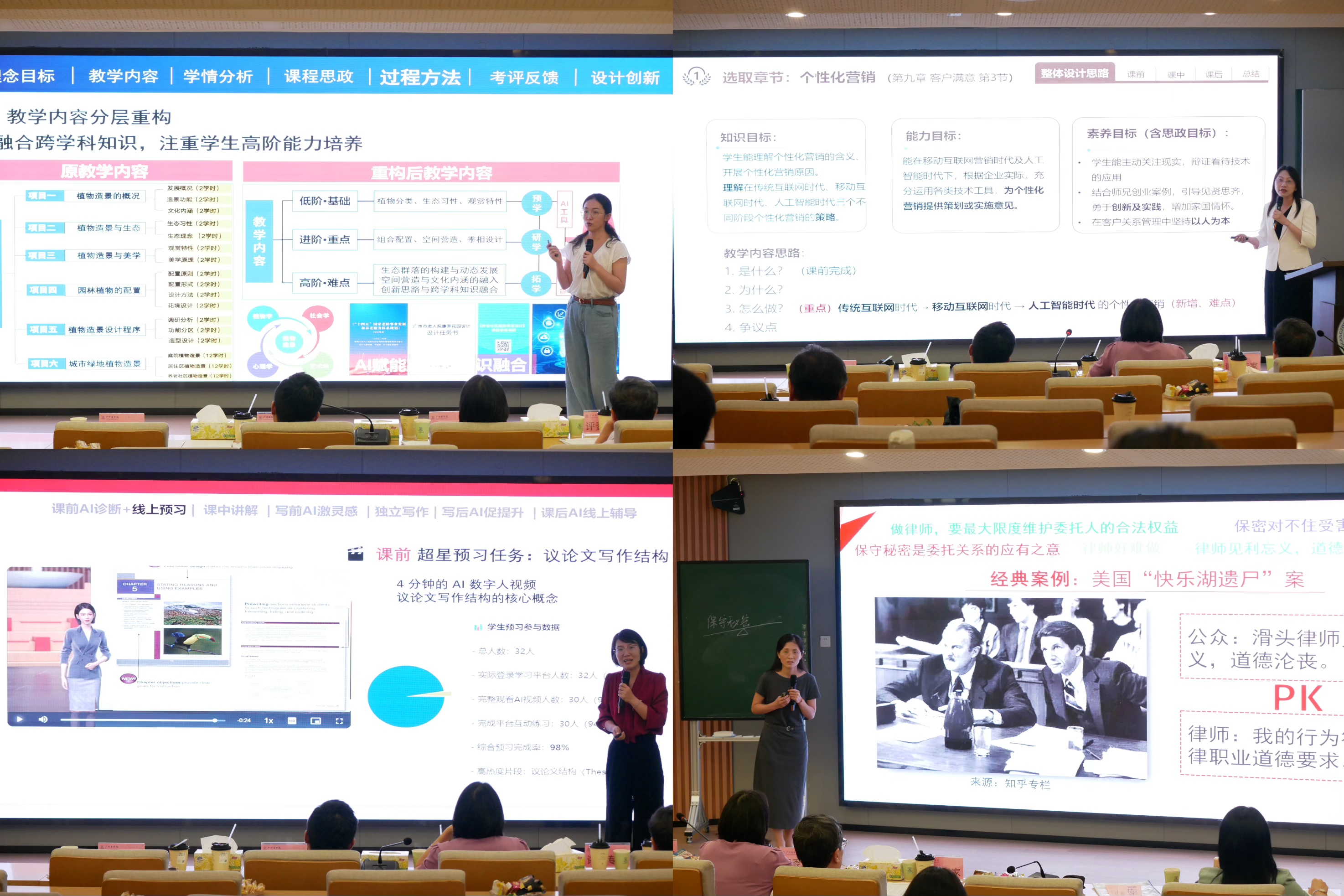 创新展示,思想碰撞。大赛决赛现场分设上午场与下午场,参赛教师按抽签顺序依次登台进行现场节段汇报,围绕“AI 赋能教学设计创新”核心,结合课程教学大纲,全景式呈现 AI 技术在课堂教学中的创新应用,通过生动的节段演绎还原 “技术赋能课堂”的真实场景。从商科到艺术、从经管到外语,参赛教师们以跨学科的创新实践,勾勒出 AI 技术与教育教学深度融合的多元图景,既展现了技术赋能课堂的无限可能,更传递出广商教师在数字化转型浪潮中勇于探索、敢于突破的育人初心。