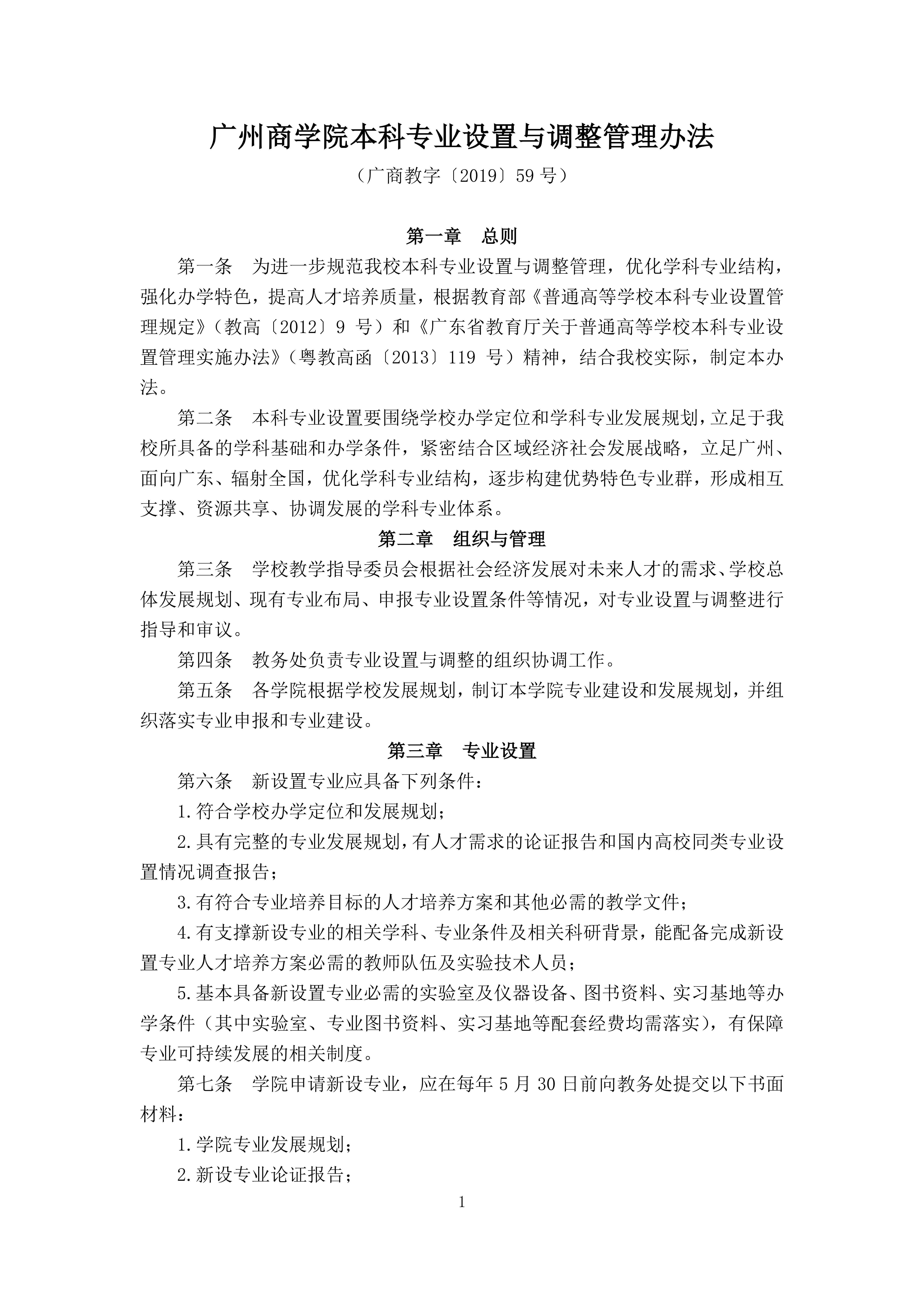 广州商学院本科专业设置与调整管理办法(广商教字〔2019〕59号)
